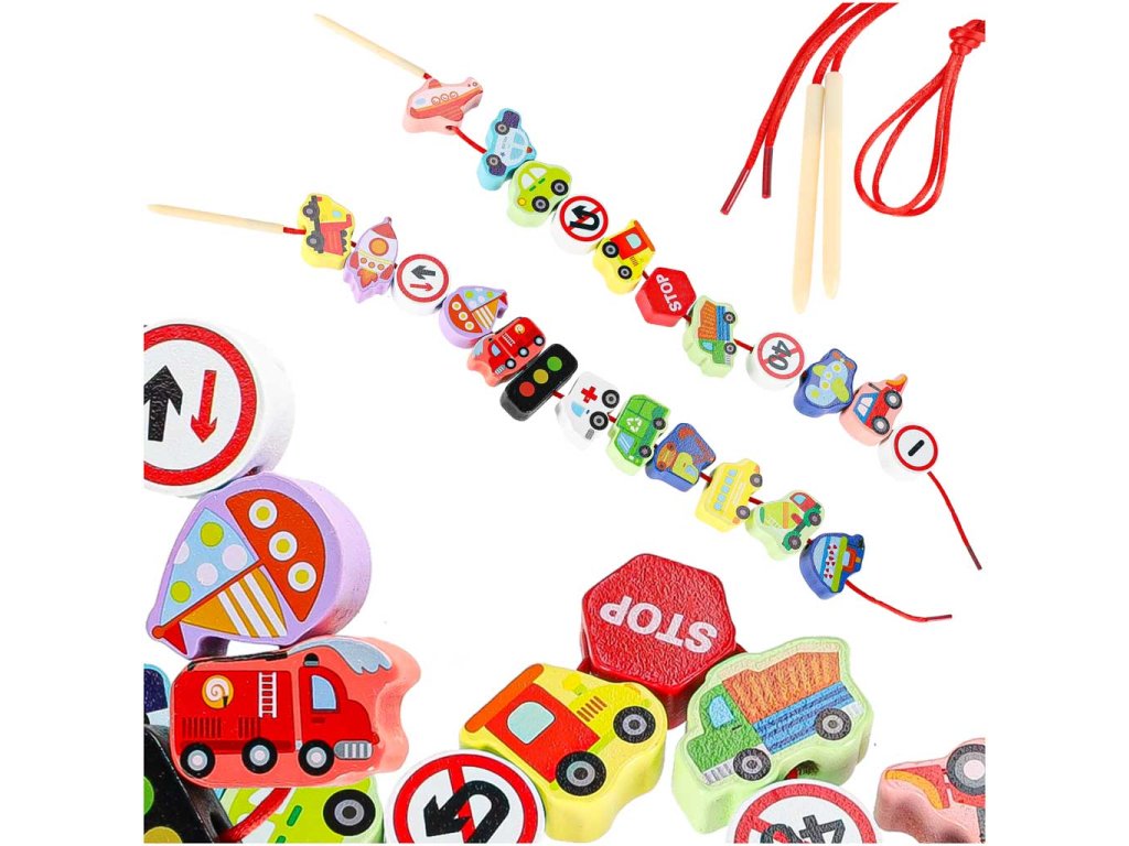 Počet prvkov v súprave: 1 ks: 23 blokov na navliekanie + 2 šnúrky zakončené drôtikom