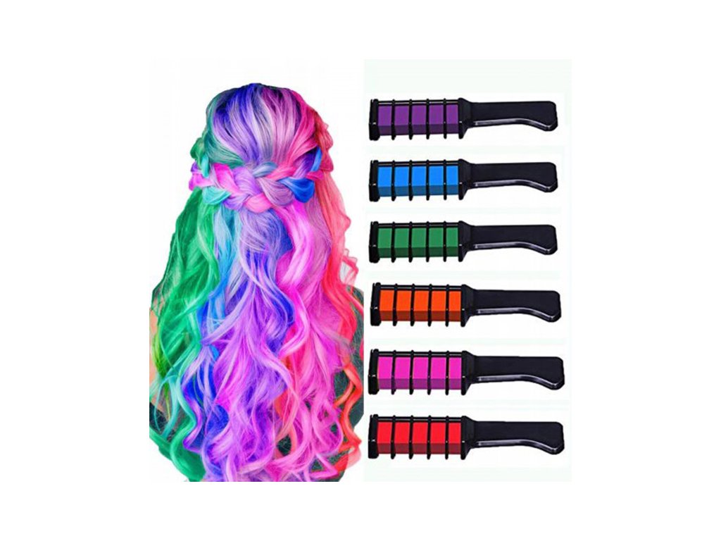 Hrebeň s farebnými kriedami na vlasy 6 farieb