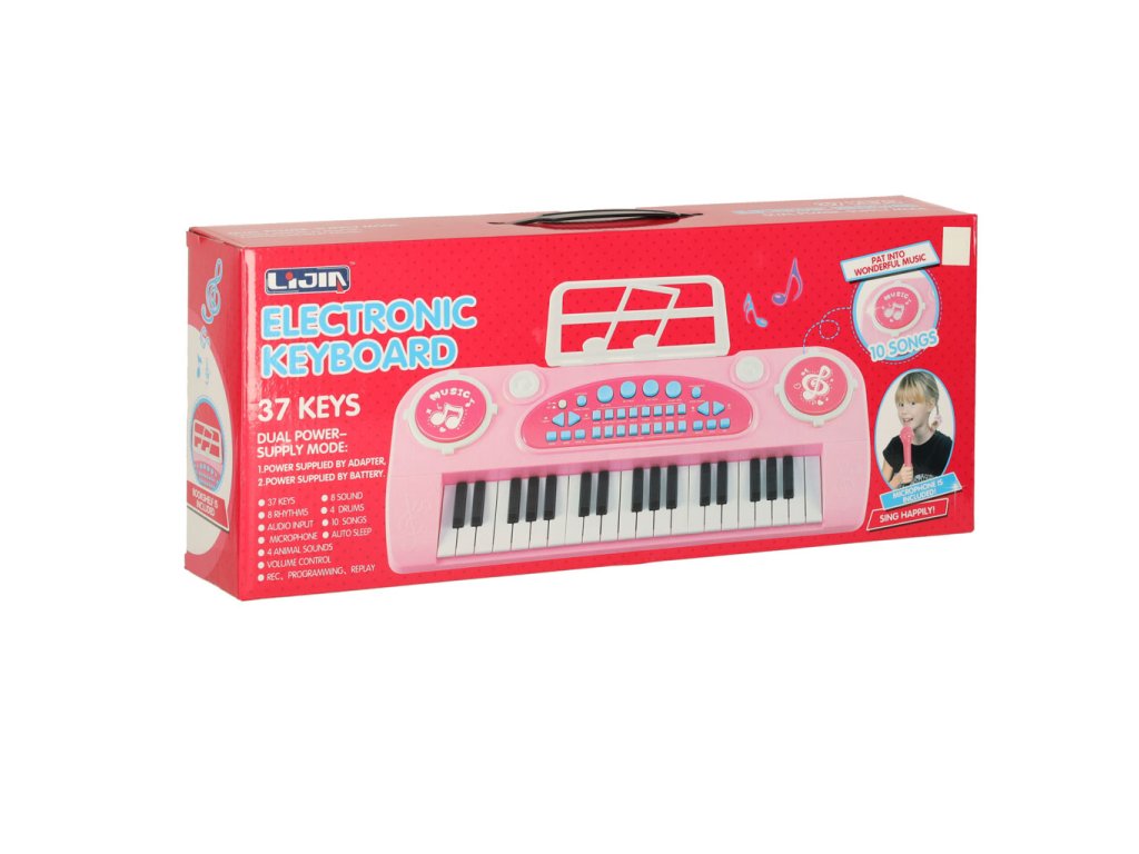 Klávesnica pre deti interaktívny klavír organ 37 klávesov mikrofón stojan ružová
