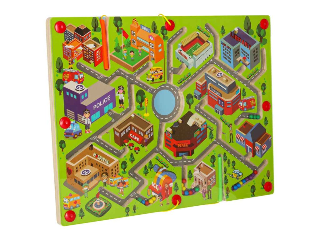Magnetická drevená dosková hra s bludiskom na cestovanie veľké mesto 2 hráči