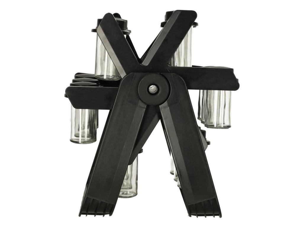 Stojan na korenie udržuje poriadok v množstve balení korenia. Pomocou 18 sklenených nádob so skrutkovacími uzávermi a stabilného stojana budetemať všetky svoje obľúbené koreniny vždy po ruke, čo vám výrazne uľahčí prípravu chutných jedál. Vďaka modernému dizajnu bude stojan krásne vyzerať na vašej kuchynskej linke.