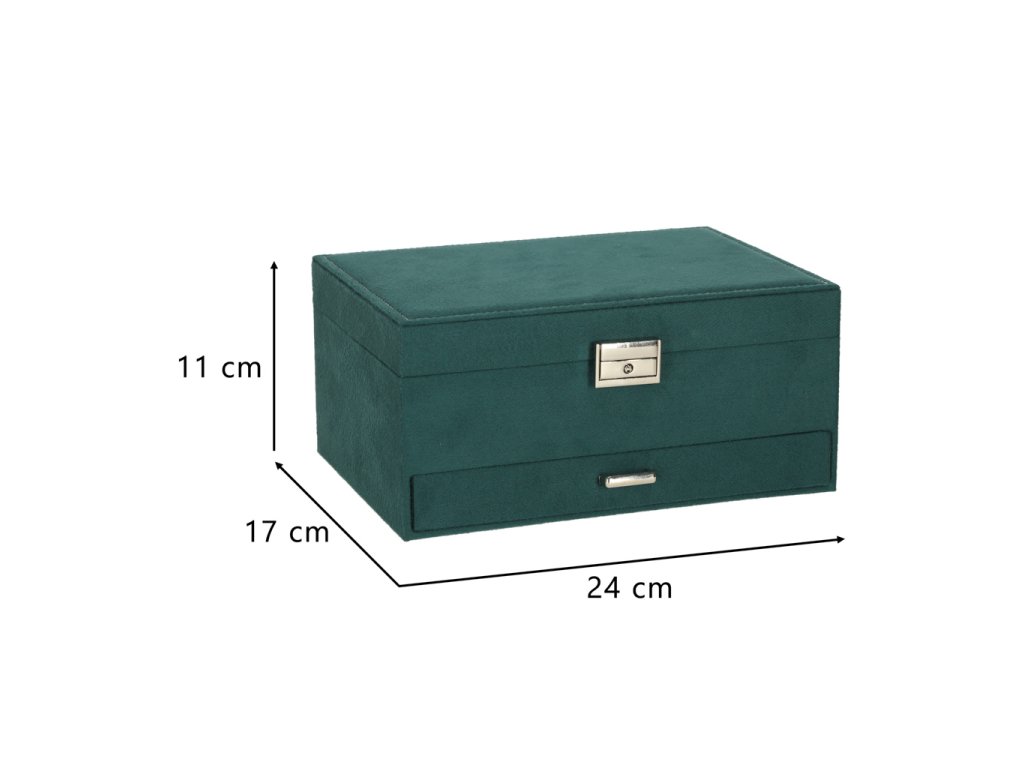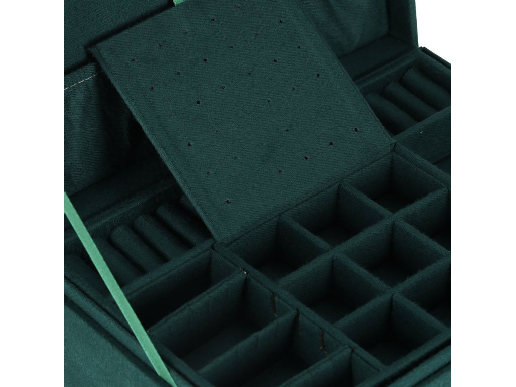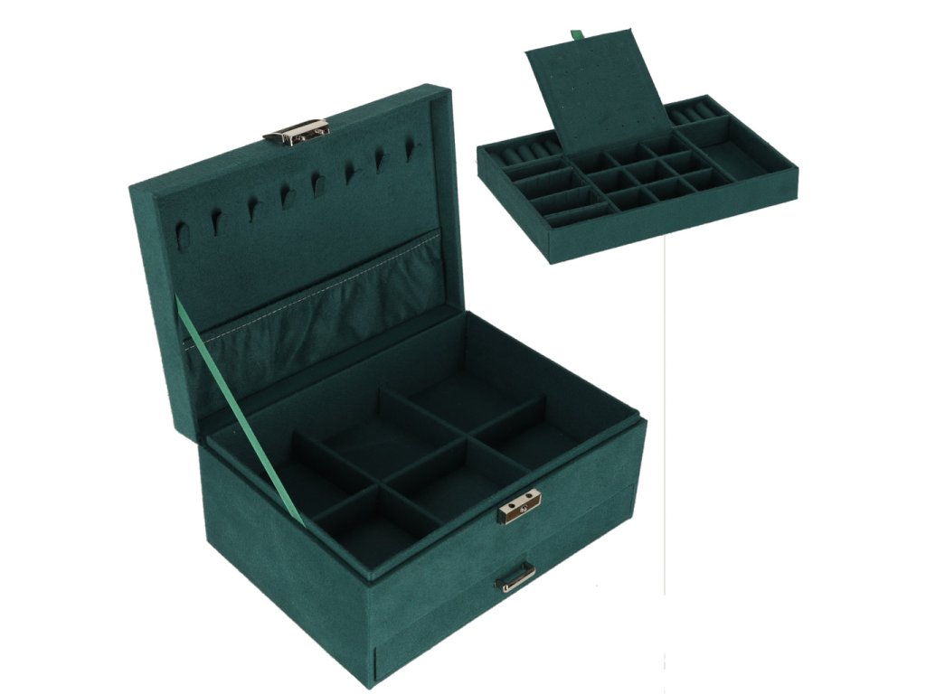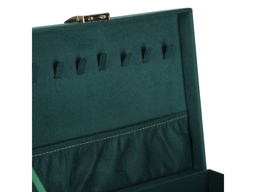 Kazeta v elegantnej zelenej farbe osloví estétov aj tých, ktorí uprednostňujú praktické doplnky. Má priehradky s odnímateľnými stenami, čo umožňuje pohodlne usporiadať priestor podľa vašich potrieb.