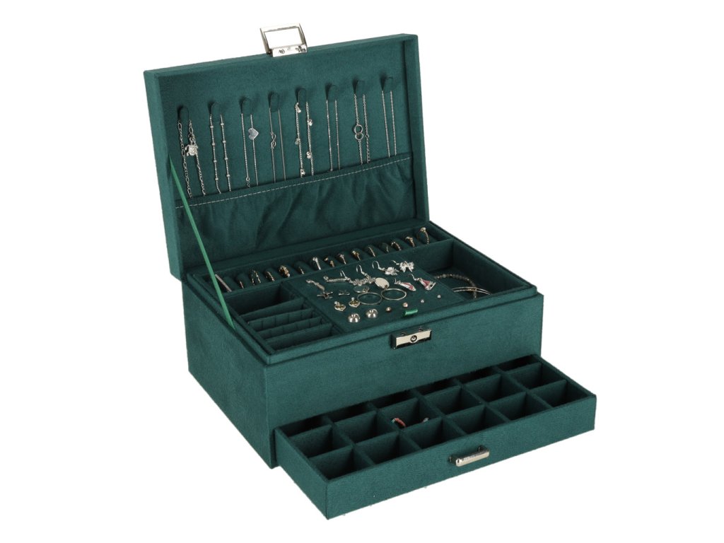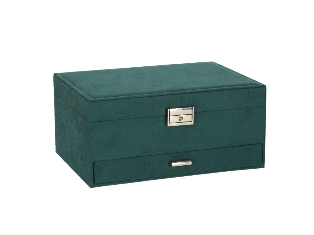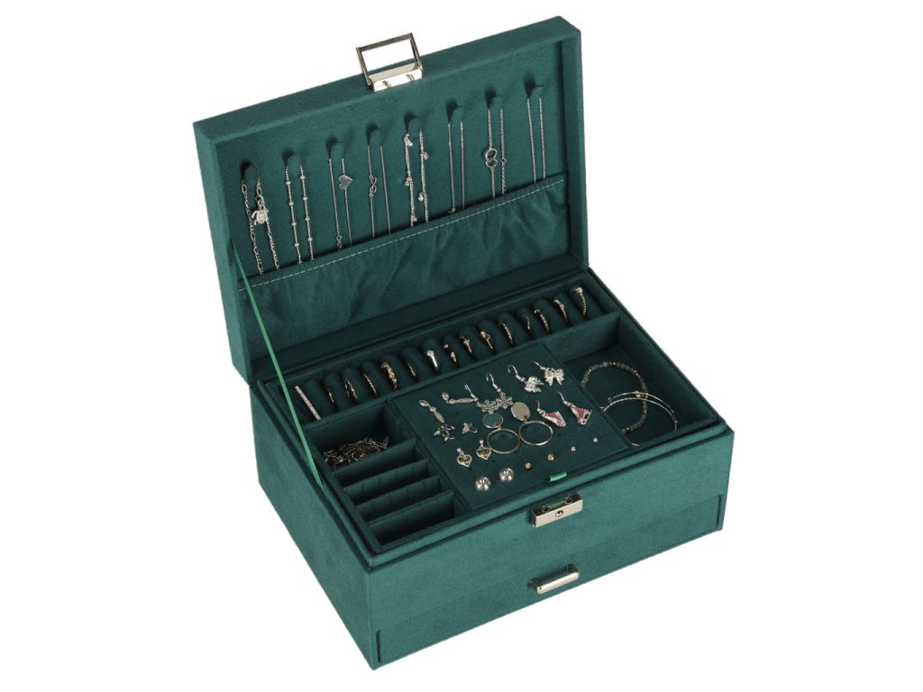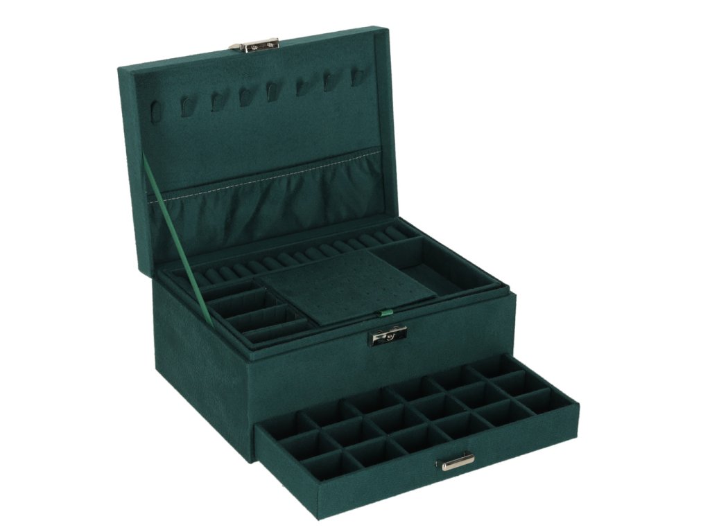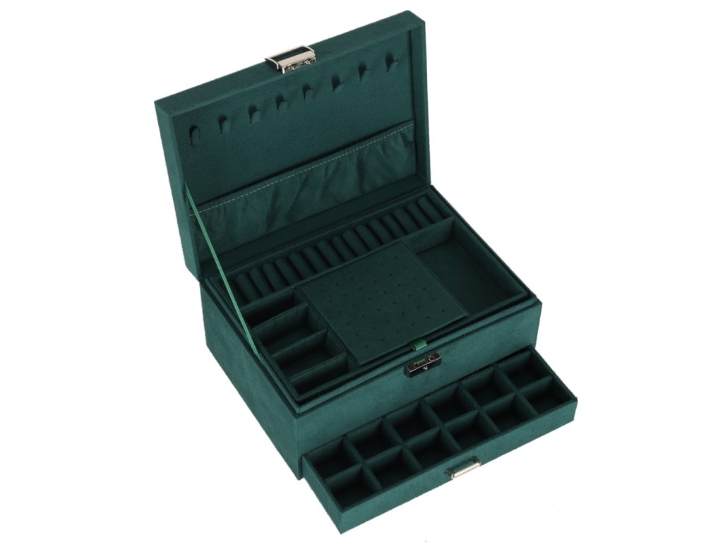 Kazeta v elegantnej zelenej farbe osloví estétov aj tých, ktorí uprednostňujú praktické doplnky. Má priehradky s odnímateľnými stenami, čo umožňuje pohodlne usporiadať priestor podľa vašich potrieb.