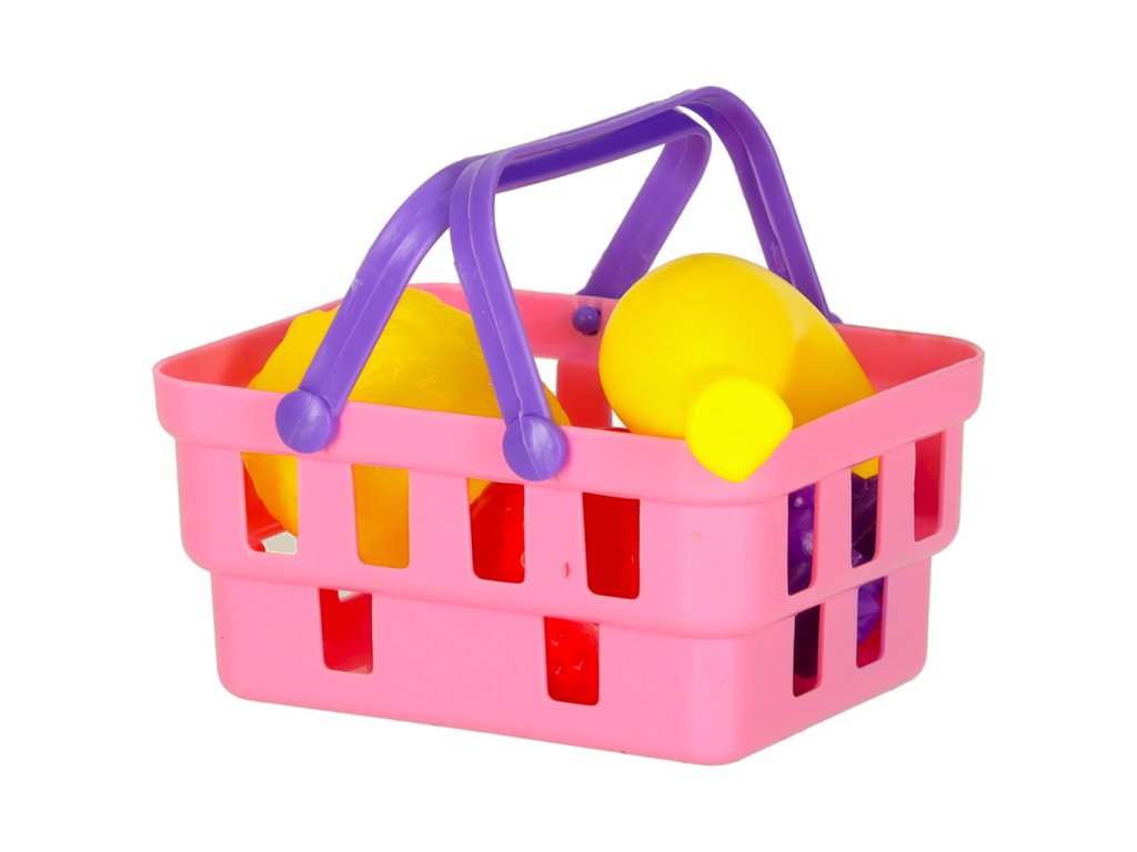 Vek: 3+. Farby: fialová, ružová, modrá, žltá. Materiál: plast (olejová tkanina mierne gumová). Výška koša s rukoväťou: 24 cm. Výška bez rúčky: 14,7 cm. Dno: 17 x 14 cm. Vrchná časť: 19 x 24 cm. Kôš má dve otváracie klapky, hornú