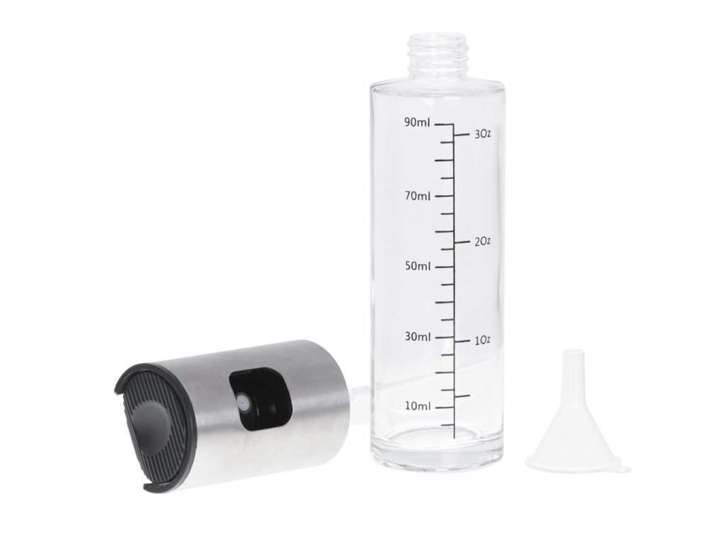 ROZPRAŠOVAČ OLEJA S DÁVKOVAČOM OLEJA SO 100 ML STUPNICOU Varenie môže byť nesmierne zábavné, najmä ak máte po ruke množstvo vynikajúcich kuchynských nástrojov. Použitie tekutého korenia dodá každému jedlu neuveriteľnú chuť. Dávkovač môžete naplniť olejom, olivovým olejom, octom alebo dokonca sójovou omáčkou! Potom jednoducho kliknite na tlakovú pumpu a rozprašovač oleja vytvorí rovnomernú hmlu. Budete môcť pripraviť veľké množstvo tekutého korenia, pretože dávkovač má kapacitu až 100 ml! Užitočný dávkovač je ideálny do každej modernej kuchyne. Rozprašovač je možné opakovane používať. Vďaka priloženému lieviku bude jeho plnenie veľmi jednoduché a stupnica na boku fľaše vám umožní presne určiť množstvo použitého tekutého korenia. Rozprašovač bol vyrobený z odolných a potravinárskych materiálov. Fľaša je vyrobená z potravinárskeho skla a rozprašovač je vyrobený z plastu a nehrdzavejúcej ocele. Hlavné vlastnosti rozprašovača: Podrobnosti o výrobku: Plastové: Plast, kov, sklenená fľaša Kapacita: 1,5 l, 2,5 l, 3,5 l, 4,5 l: 100 ml Odstupňovanie: 5ml-90ml Rozmery: