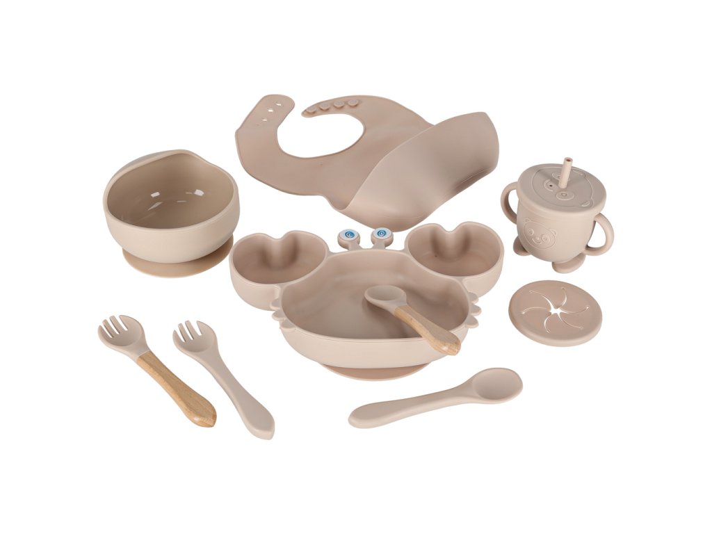 Silikónové detské riady baby crab sada 9 kusov béžová